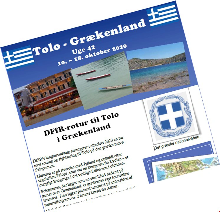 En af DFfRs (Dansk Forening for Rosport) ferieture i år går til Tolo, så her er chancen for en tur, hvis din roklub ikke skal til Tolo i år, eller du måske kunne tænke dig en ekstra tur og skabe nye rovenner.